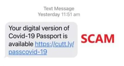 We have been made aware of a new text message scam doing the rounds relating to COVID-19 vaccine passports. These text messages can look convincing however are designed to steal customers personal information and may include: