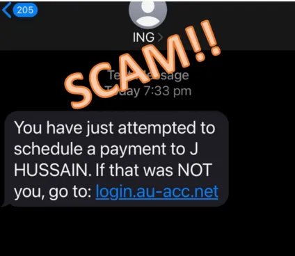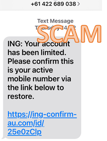 2. The link doesn’t look genuine or doesn’t include ing.com.au (like the one in the pictured SMS)