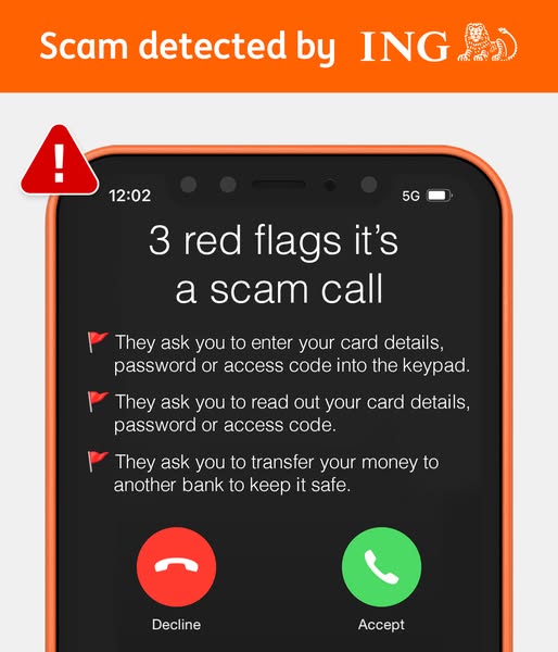 We're aware of customers receiving calls from people claiming to be the “ING Fraud Team”. In these calls, customers are being told that there has been an attempted transaction which ING has blocked for security concerns and are prompting these customers to set additional security on their accounts.
