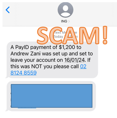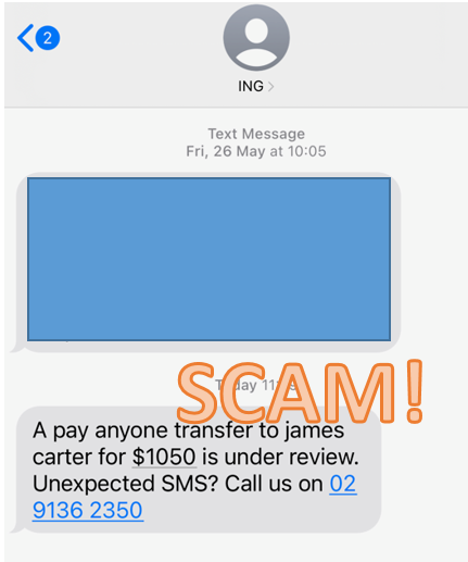 We’re aware of a number of fake SMSes currently circulating, one of which claims to be from ING. The SMS is advising that you logged into a new device or that you have attempted to schedule a payment and to click a link if it was not you. Just so you know, we’d never ask you to click a link in an unsolicited text or email to confirm something. We’re taking steps to address these SMSes.