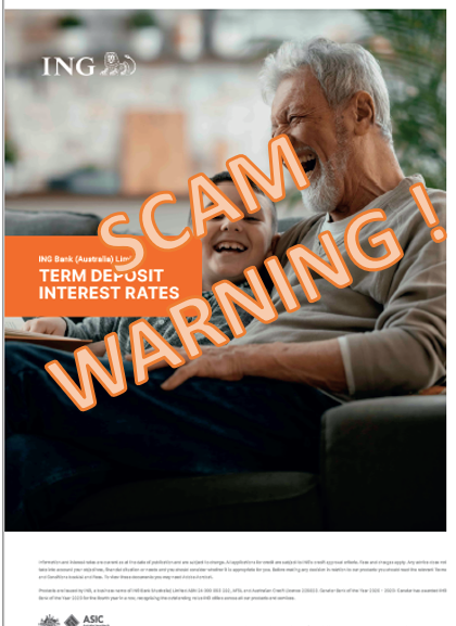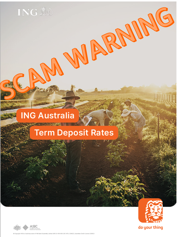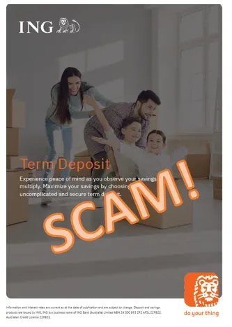 Scammers are pretending to be ING and promoting a Savings Accelerator Fixed-term deposit. This is an investment scam. So please keep your eyes open and tell your friends too.
