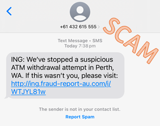 We’re aware of a number of fake SMSes currently circulating, one of which claims to be from ING. The SMS is advising of unusual activity and that someone will be in contact with you shortly. Just so you know, we’d never ask you to click a link in an unsolicited text or email to confirm something. We’re taking steps to address these SMSes.