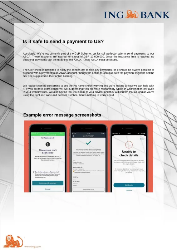 • do not rely on the numbers in the text or email, even if it appears in your ING message trail.