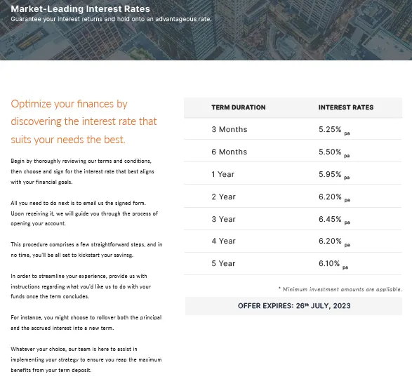 High interest rate guaranteed for the term. You choose the timeframe.